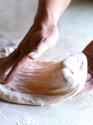 ピザ作りの専門職人が毎日丹精込めて丁寧に手作りしています。